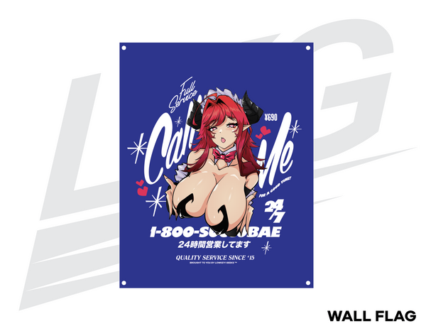 LOWKEY! "CALL ME FOR A GOOD TIME" SUCCUBAE WALL FLAG